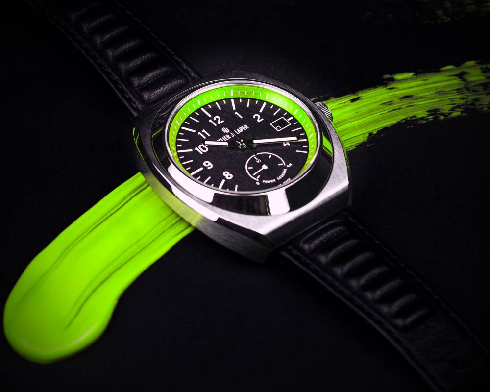 Indexes: Inspired by the Miura's original speedometers. The hour markers are luminescent in the dark.